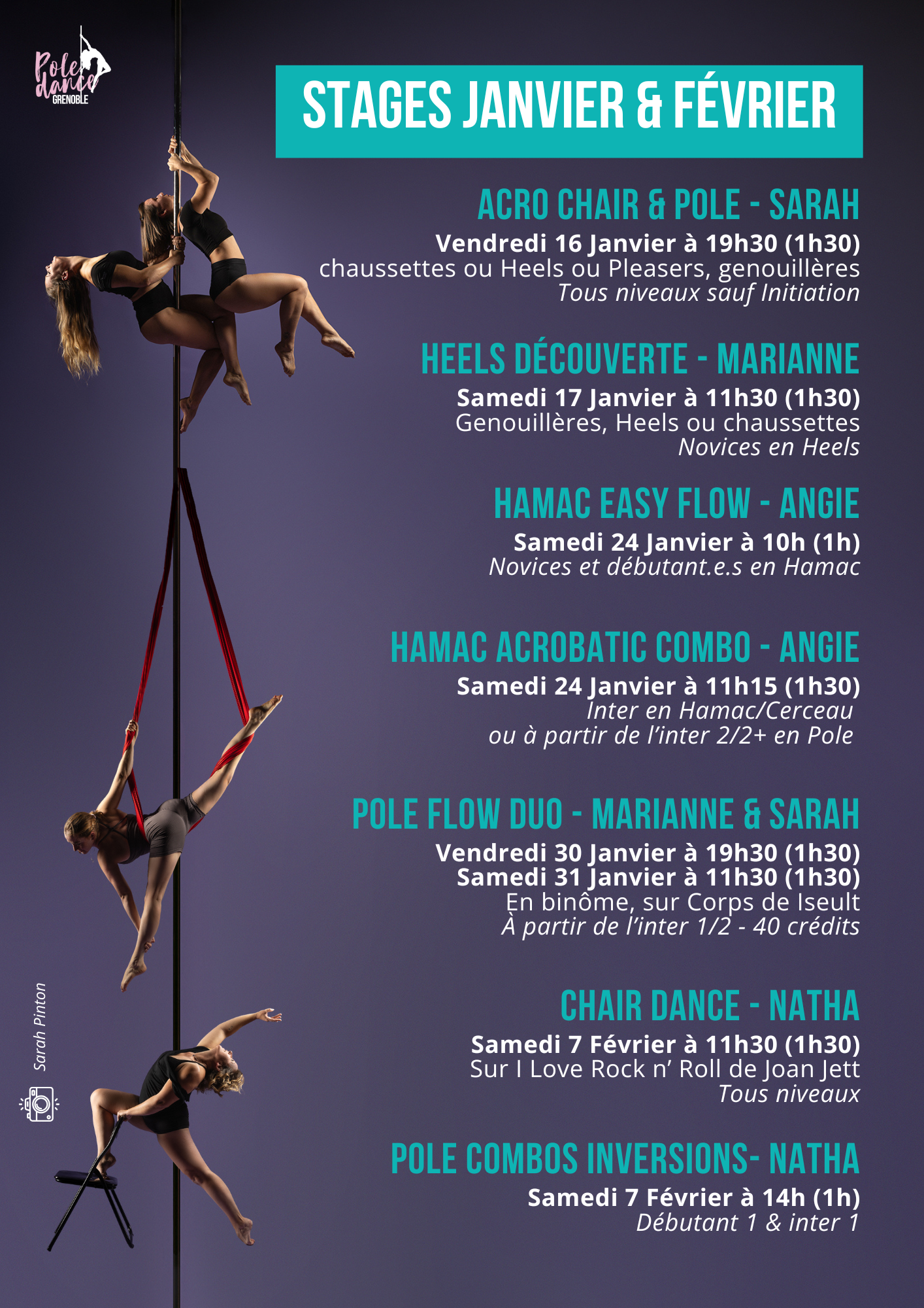 Ce stage est ouvert à tous.tes, vous n'êtes pas obligés de suivre des cours de Pole Dance ou Cerceau pour vous inscrire.
