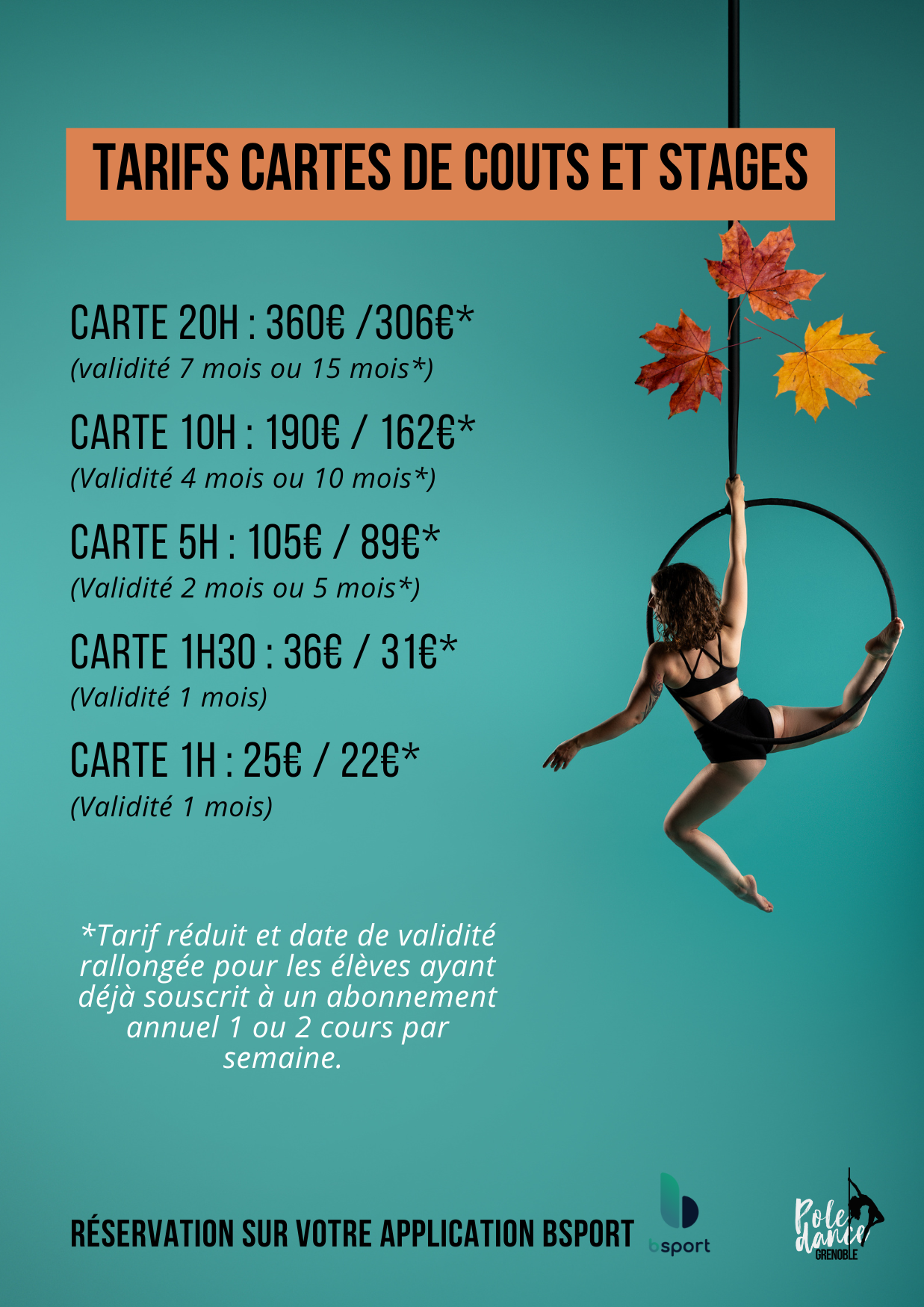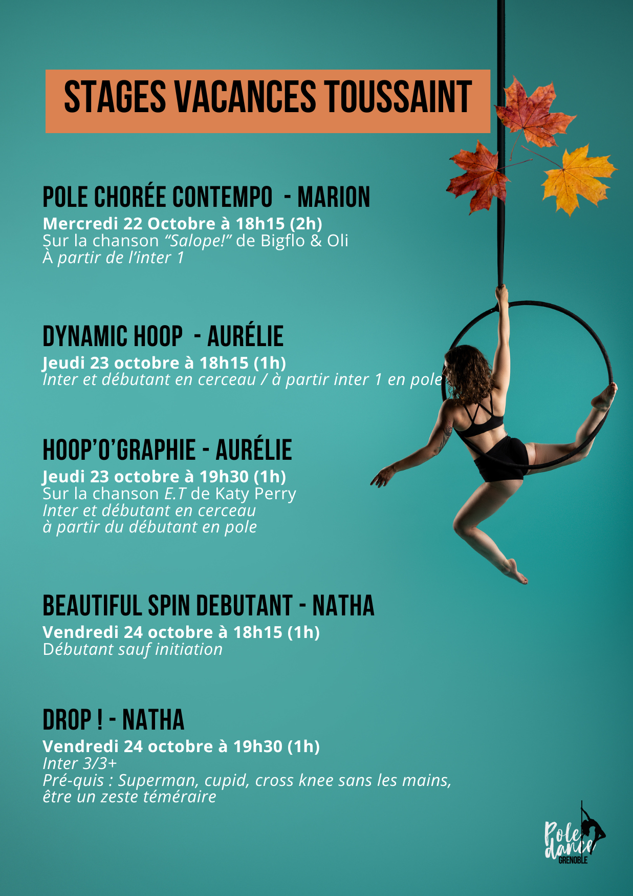 Niveau : Inter en cerceau ou à partir du niveau inter 2+ en Pole (pour les élèves souhaitant découvrir le cerceau)
